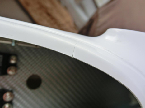 Riss im Rumpf, unterhalb der Kanzel, wurde von mir repariert, da ich das Reparaturangebot von Tangent nicht angenommen habe.