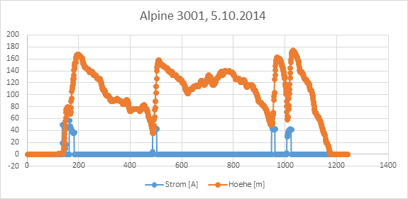 Flugdaten vom 5.10.2014: Mein dritter Flug mit der Alpina (Zeitachse in s).