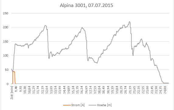 Motorsteigraten liegen bei 8 bis 9 m/s. Stromaufnahme bei ca. 42 A.