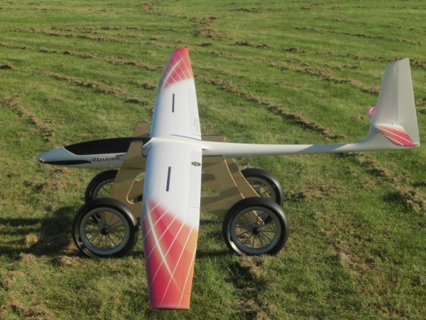 Der Wind kam aus NO. Mutig Gas rein, das Modell schiebt den Startwagen vehement nach vorne und hebt schon nach 4-5m ab. Prima. Es geht mit einem Winkel von ca. 60° nach oben. Die Alpina liegt wie auf Schienen in der Luft. Einfach faszinierend. Aber eigentlich habe ich das auch erwartet, denn die Alpina hat in ihren verschiedenen Versionen auch schon ca. 3 Jahrzehnte Entwicklung mit kontinuierlicher Veränderung sprich Verbesserung hinter sich. Angefangen mit der „Ur-Alpina“ von Tangent Multiplex mit ihrem Ritz Profilstrak. Profile und Anstellung der Tragfläche zur Rumpflängsachse wurden immer auf die jeweiligen Erkenntnisse hin verändert. Egal wo ich beim Modellflug zusah, fiel mit eine Alpina 4001 immer positiv auf, egal ob im Schnell oder Langsamflug. Aber zurück zum Erstflug. Die Klappenstellungen für Speed- und Thermikflug scheinen ebenfalls zu stimmen. Wobei ich jedoch zuerst Probleme hatte, waren die Kurvenflugeigenschaften in der Speed-Phase und in der Thermikphase. Also erst einmal in der Start- und Landphase bzw. Normal-Phase weitergeflogen. Nachdem auch einige kräftige Böen gemeistert wurden, stand die erste Landung an. Das ging mit Butterfly und Störklappe relativ gut, aber eine Feinabstimmung der Höhenruderbeimischung muss noch erfolgen.