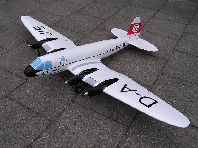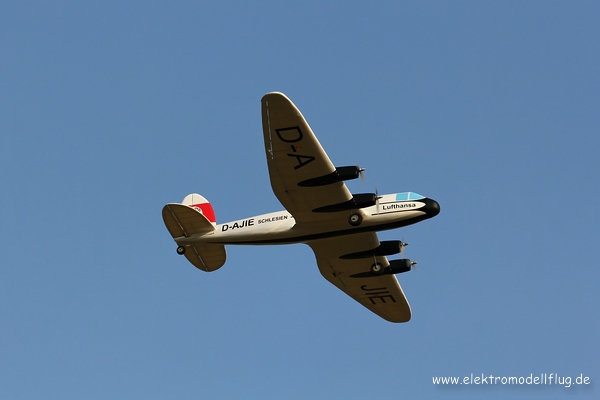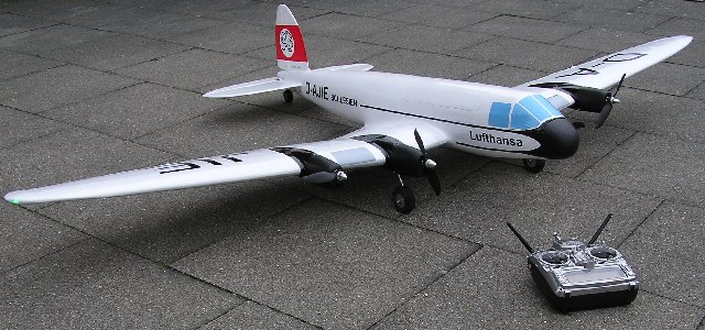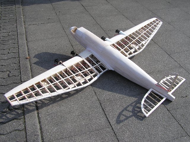 Als Modell ist sie insbesondere interessant wegen ihrer anspruchsvollen Form. Vier Motoren und die geschwungene Tragflächenform geben dem Modell eine besondere Note. Ein Modell sollte bei mir entstehen im Maßstab 1:10. Das bringt ein stattliches Modell mit 2,20m Spannweite in die Luft. Als Vorgabe für den Bau steht das Gewichtslimit von 5kg wegen der Auflagen unseres Fluggeländes.