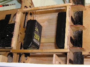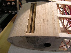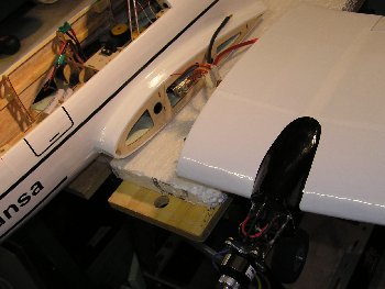 Die Abdeckung für den Akkuschacht ist aus einer eigenen Rippenkonstruktion hergestellt. Zur Einpassung in den Rumpf habe ich den Rumpfteil mit Frischhaltefolie geschützt und die Akkuschachtabdeckung mit dem Rumpf verspachtelt. Nach dem Verschleifen passen die Teile perfekt. Die Abdeckung wird gehalten mit Supermagneten von "supermagnete.de".