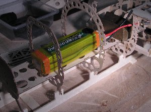 Die Stromversorgung ist ebenfalls redundant ausgelegt. Sie wird betrieben mit einem 6V Eneloop-Akku-Paket und einem SBEC-Regler von Dymond. Die beiden Spannungsquellen betreiben die Empfänger über eine Akku-Weiche, die mit zwei Ausbängen versehen ist. Der SBEC-Regler hält seine Versorgung durch den 4S-Flug-Akku.