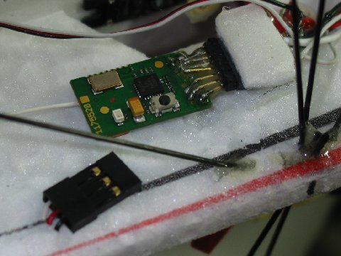 An der Buchsenleiste werden dann die Spannungsversorgung und die Servokabel angelötet. Dazu werden alle Masse- und Plusleitungen parallel geschaltet und da ich D47 Servo´s verwende habe ich auch das Accukabel direkt ( ohne BEC ) angeschlossen – und die Plusleitung des Regler´s einfach weggelassen – diese Servo´s und der Empfänger können direkt mit mit 2 Zellen Lipo betrieben werden – Vorteil: schnellere Servo´s, weniger Verluste.